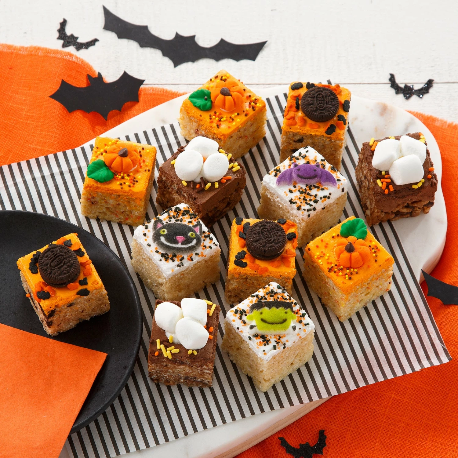 Send the most memorable trick-or-treat gift with this fun assortment of Halloween rice krispie treats. Makes the perfect gift for all ages. This collection of treats arrive in a Treat House gift box with Mrs. Fields red gift ribbon.