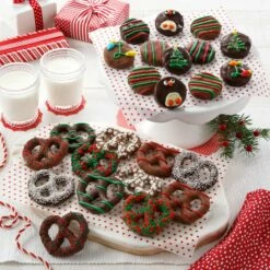 Send your Happy Hanukkah wishes with this deluxe gift box. Each box is filled with Hanukkah themed decorated rice krispie treats that are pull-apart gooey goodness. Gift includes:5 Jumbo treats and 24 mini rice krispie treats. Large rice krispies measure between: 3.5″ x 3″ x 1.25″ to.4.5″ x 3.75″ x 1.5″Mini rice krispies measure: 1.5″ x 1.5″ x 1.75″All rice krispie treats are hand-made and uniquely decorated just for you. This collection of treats arrive in a Treat House gift box with Mrs. Fields red ribbon.