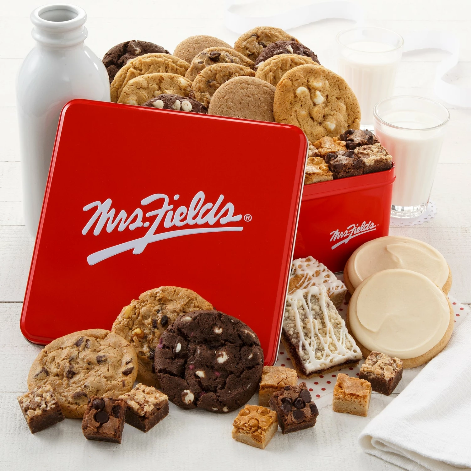 Our ever-popular cookies and brownies are made just as they’ve always been from Mrs. Fields’ original recipes and presented in our signature tin.